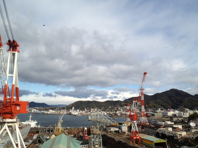 「歴史の見える丘」から見下ろす呉港。かつては軍船で溢れかえっていた。現在でも海上自衛隊の基地がある。