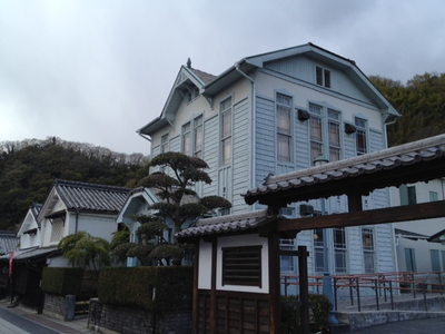 こちらも竹原の代表的邸宅の建築。菱形の格子の窓が目を引く。