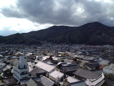 西方寺から市街地に降りる道。映画のロケに使えそう。
