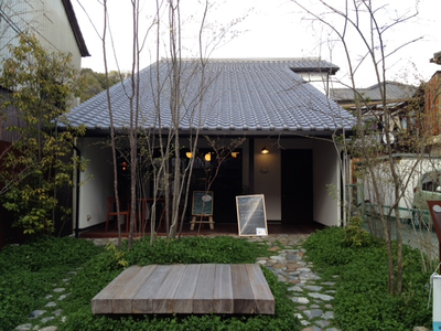 古民家カフェなども見受けられたが、このような街並みに調和したデザインのお洒落カフェも存在する。