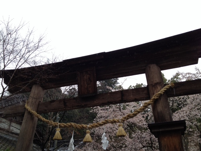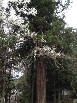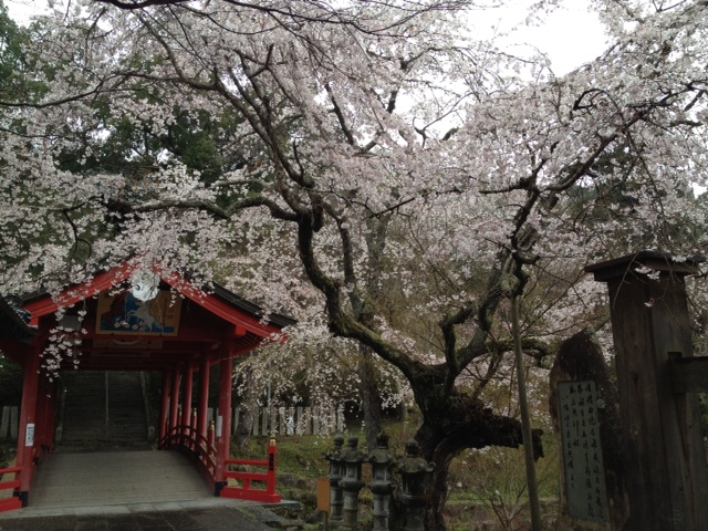 山間の神社なので桜の開花は遅め。