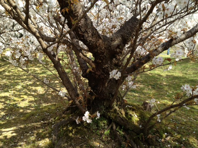 根元を見ると本当に不思議な生え方をしている。こんな桜、此処でしか見れない。