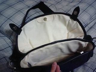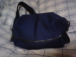 色的には茶系の皮部と明るいカラーのキャンバス地のコントラストがクッキリと出たカーキの方がずっと可愛かったものの、実際見てみるとネイビーのキャンバス、黒皮、シルバーの金具の渋い組み合わせのネイビーの方がよかった。