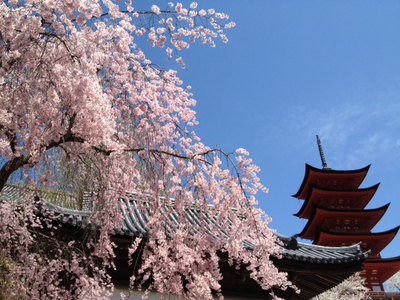 宮島といえば紅葉のイメージが強いが桜も中々。