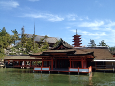 厳島神社のその独特な建築は陸からせり出した海上に造られた社殿としてあまりに有名。現在の社殿は平安期に平清盛によって造営されたものが原形となっており、その建築物の殆どは国宝・重要文化財。