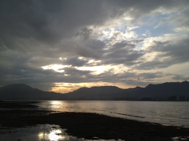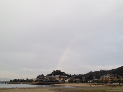 この日の干潮は夕暮れの時間帯、一瞬軽く雨が降ったんですがその後微かに夕日を浴びてレインボーが!