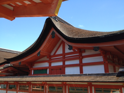 国指定重要文化財の本殿の屋根の様式は特異なもので大元葺と呼ばれ、ここでしかみられない形状のものという。