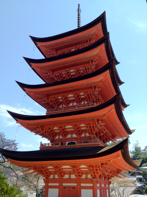 宮島きってのイケメン建築。禅宗様の屋根の反りが美しい。