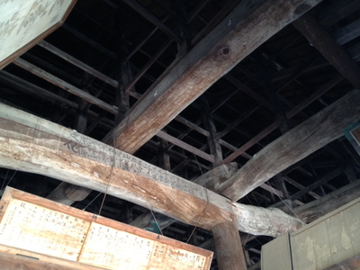 千畳閣で見るべきはこの天井の梁。物凄いです。