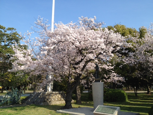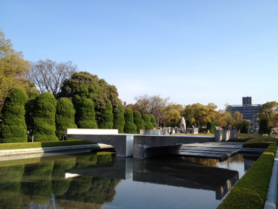 被曝の歴史を刻んだ土地で、水を求めて肌の焼けただれた被爆者の人々がこの庭園の池の水を飲みに集まり、次々とそのまま息絶えていき庭園内は死者の遺体で溢れたという。