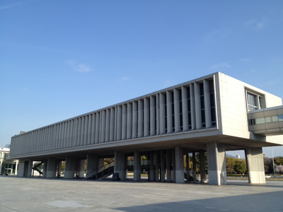 資料館の建物は丹下健三による設計で戦後モダニズム建築の傑作とされ、国の重要文化財となっている。