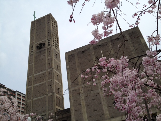 村野藤吾による設計の斬新な教会建築。中のステンドグラスのデザインもまた斬新。国指定重要文化財。
