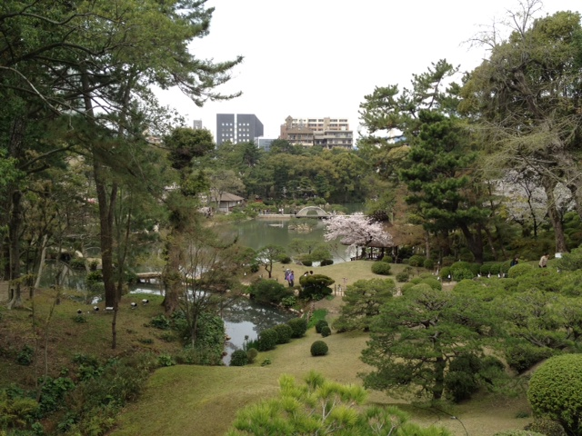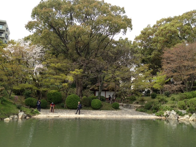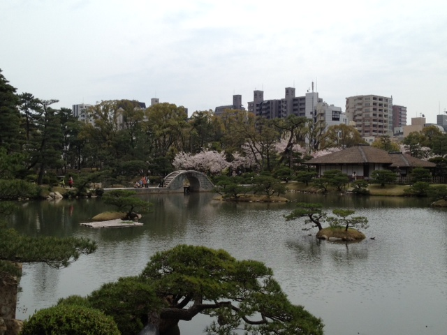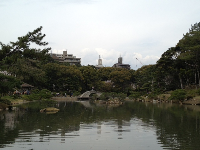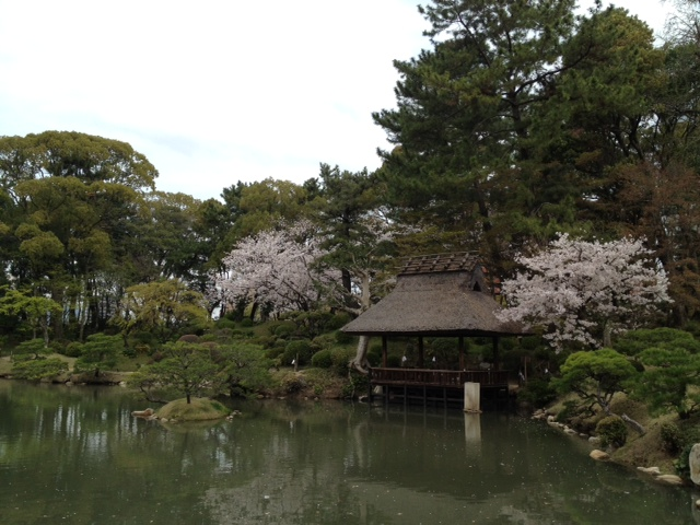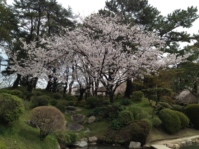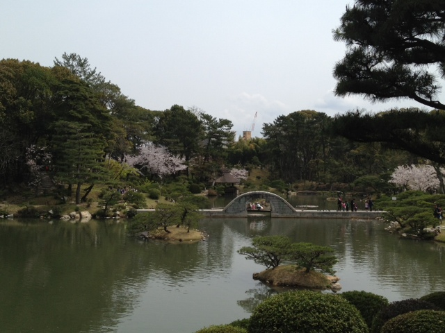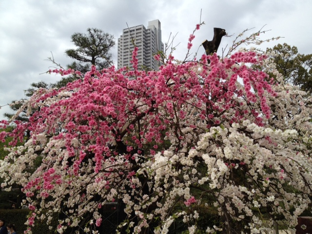 この縮景園、本園の前庭では多くの枝垂れ桜や桃が満開になっていて大変華やかで正直こちらの方が見応えがあったかも。