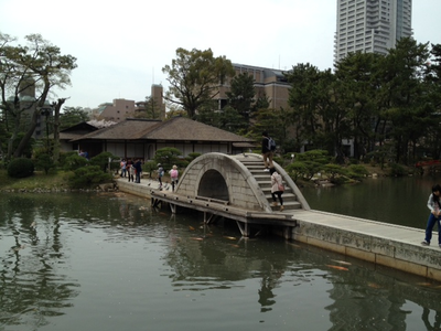 跨虹橋。縮景園のシンボル。原爆の爆風にも耐えた石橋。
