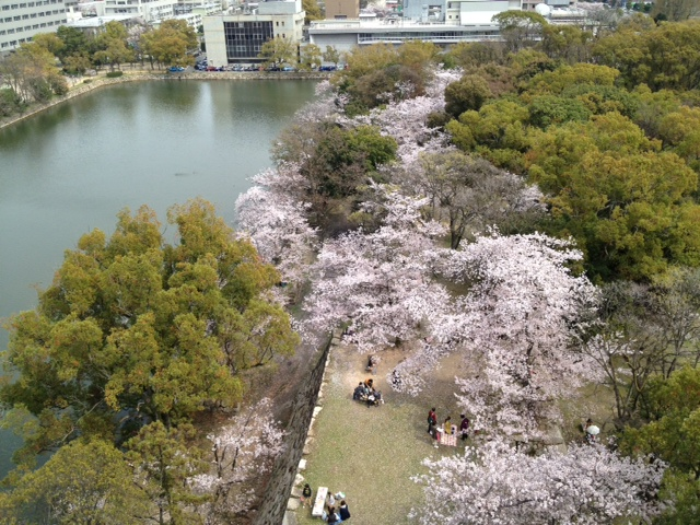 天守からの眺望。桜はまだこの頃ギリギリ満開。