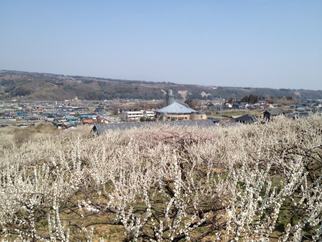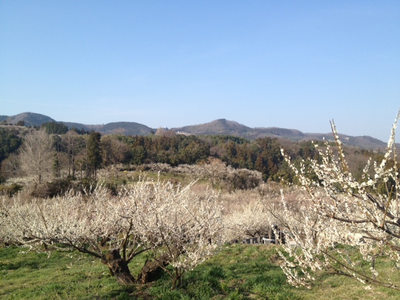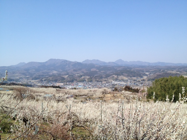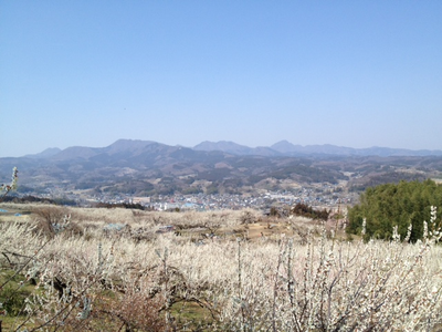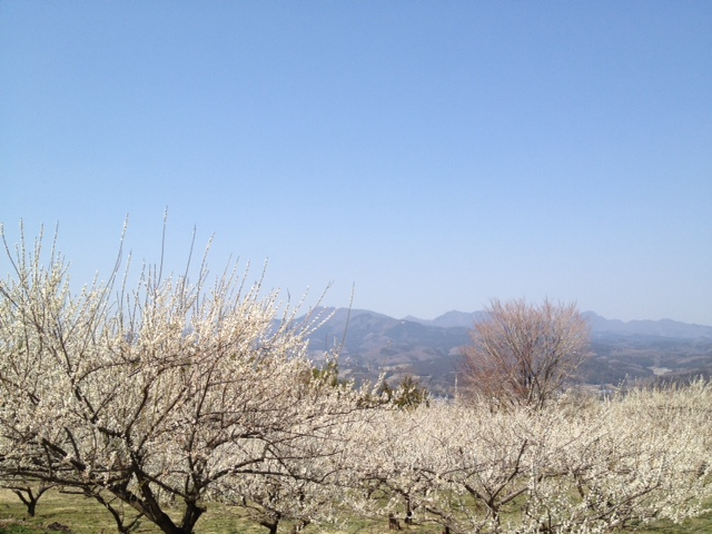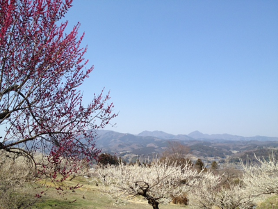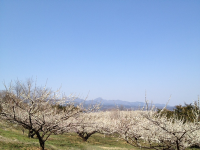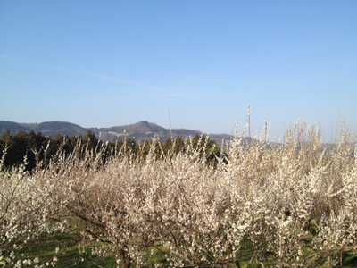 白梅はおそらく殆どが『白加賀』。上毛三山の一つ、榛名山を背景に咲き誇る。