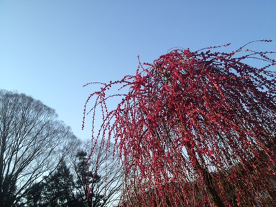 紅枝垂れはまだ二分咲き程度。
