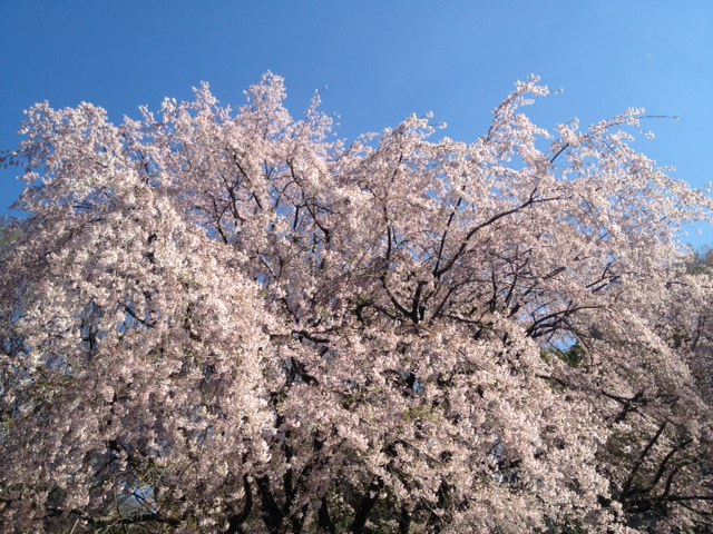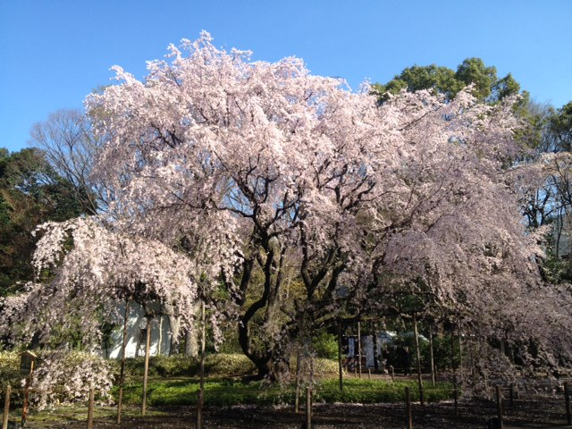 六義園のもう一つの枝垂れ桜。下の方は散り始めていたが上部はまだ見ごろ。