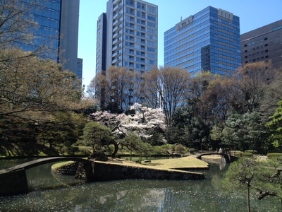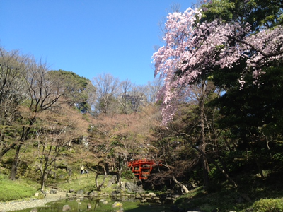 同じく枝垂れ桜が有名な小石川後楽園。