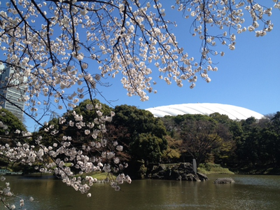 東京ドームと桜。
