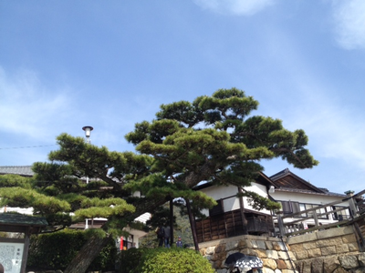 橋の麓にある有名な槍倒しの松。