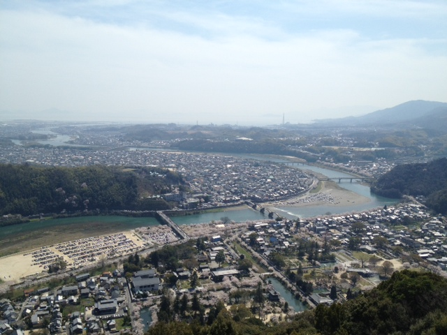 岩国城からの眺望。右下には錦帯橋の連続アーチ。
