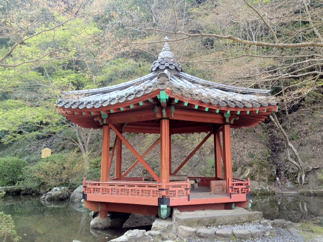 公園のシンボルはこの六角亭。明治時代に朝鮮半島から移築されたものらしく確かに屋根の反り・ラインが明らかに日本建築と異なる。