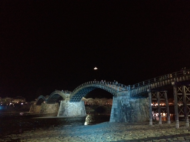 ライトアップされた錦帯橋。