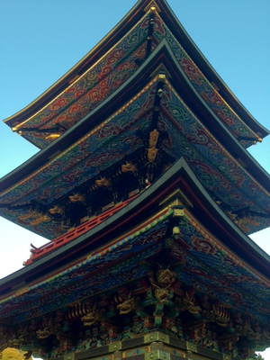 この間、補修が完了し綺麗になったという上野東照宮に寒牡丹を観に行く。