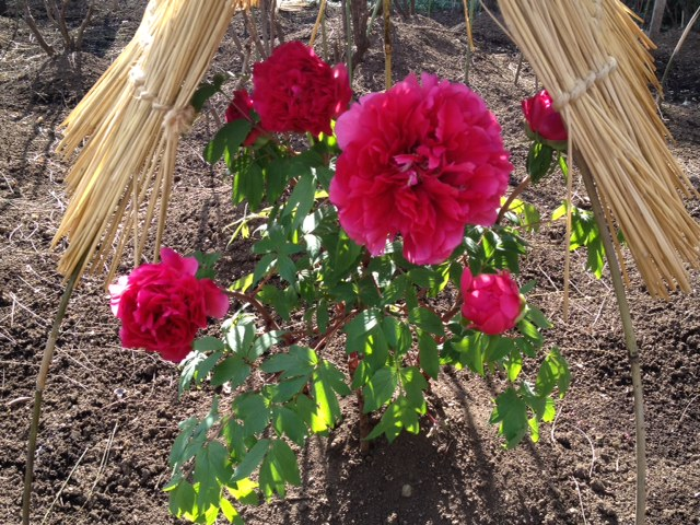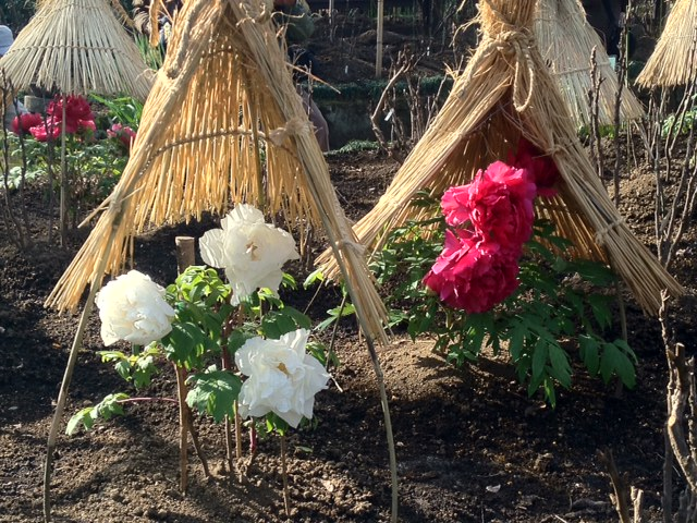 ただでさえ豪華な花なので(中国では百花の王と呼ばれる)一年の内で最も咲く花の種類が少ない今の時期にあっては余計に華やかに見える。