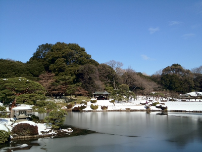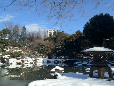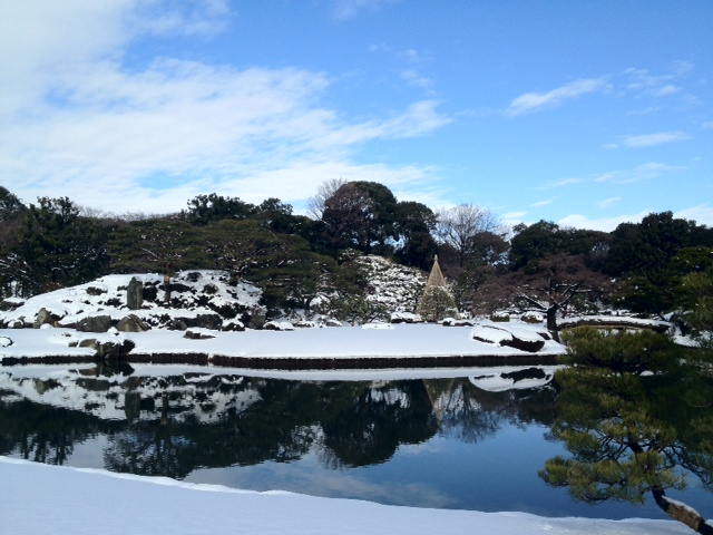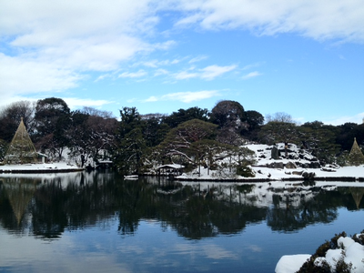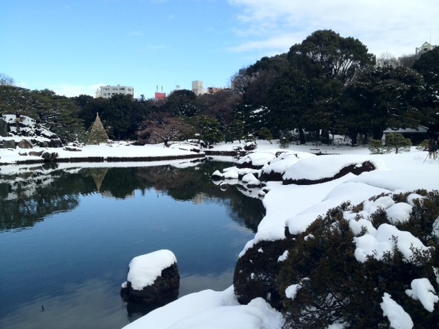 六義園と同じくツツジや紅葉が有名な庭園だが兎に角雪景色が綺麗だった。