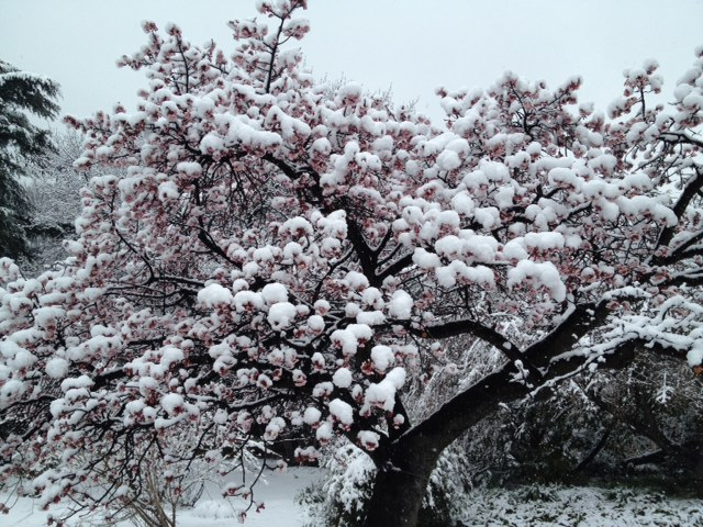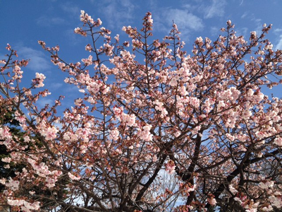 見渡す限りの雪原とはいえあちらこちらで春が近いことを感じさせる寒桜が満開に近い。