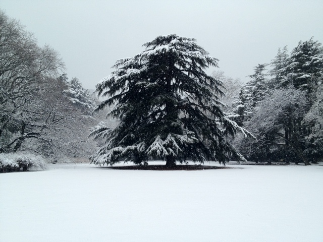 脛まで足を埋めながらズボズボと一面雪原のイギリス風景式庭園のど真ん中まで歩いていったが.........参った。