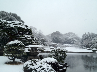 春は桜、初夏には新緑・ツツジ・サツキ、秋には紅葉に彩られていた六義園も白一色。雪景色の六義園は初めてか。